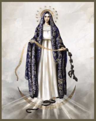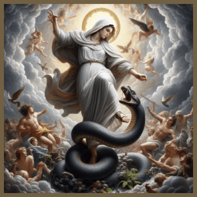 Furthermore, through the same womb that bore Christ, Mary plays a pivotal role in the regeneration of humanity, empowering her spiritual children to persevere in faith while enduring trials beneath the Cross. Her unwavering obedience and moral participation in God’s divine plan not only fulfilled the prophecies of old but also effectively crushed the head of the serpent, rendering its boastful claims before God of having seduced Eve null and void. In this cosmic struggle, Mary embodies hope and redemption, exemplifying how God’s ultimate victory over sin and death is achieved through her, thus completing His grand design of salvation for all humanity.
