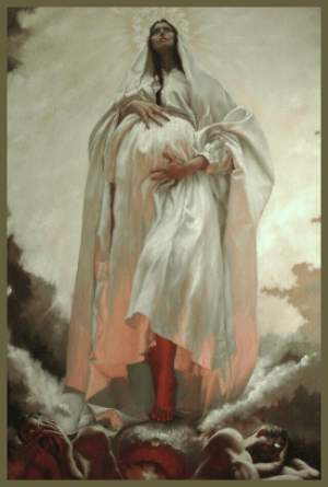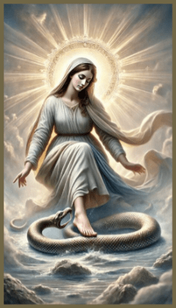 In the vivid imagery of John’s vision, he depicts the fierce and formidable dragon poised to devour the Woman as she prepares to give birth to her Son. However, just as the dragon is about to strike, the child is miraculously snatched up to His throne in Heaven, escaping the grasp of evil. Meanwhile, the Woman, symbolic of the Virgin Mary, remains undeterred, continuing her battle against the dragon alongside her other offspring—those faithful followers who diligently keep God’s commandments and testify to the message of Jesus Christ. This Woman, revered as the spiritual mother of all the living, opposes Satan, who seeks to undermine her significance due to her unique role in salvation history and her dual maternity. She called forth the Messiah into the world by embracing faith that manifests through love.