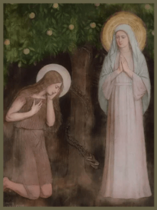 Eve remains the progenitor of unrighteous offspring, with her firstborn son Cain notorious for his act of fratricide, marking the first murder in human history. Her transgression in the Garden of Eden led not only to her own fall from grace but also to humanity’s expulsion from paradise, establishing a legacy of sin. In this dichotomy, Mary represents hope and salvation, while Eve serves as a reminder of the consequences of disobedience. Together, their roles emphasize the transformative power of faith and grace in the narrative of salvation.