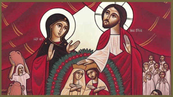The wedding feast at Cana serves as a significant symbol of the eschatological wedding of the Lamb, representing the union between the Divine Bridegroom and His Bride, the Church. This union is realized through the sacrificial shedding of His blood, as noted in Revelation 19:6-9. Mary, the mother of Jesus, played a crucial role as a mediator of divine grace for humanity when she accepted her divine calling at the Annunciation (Lk 1:38). Her continued intercession was evident when she encouraged Jesus to commence His mission, a journey that ultimately led to His sacrificial death. This act was pivotal for the atonement of the world’s sins, resulting in the redemption of humankind.