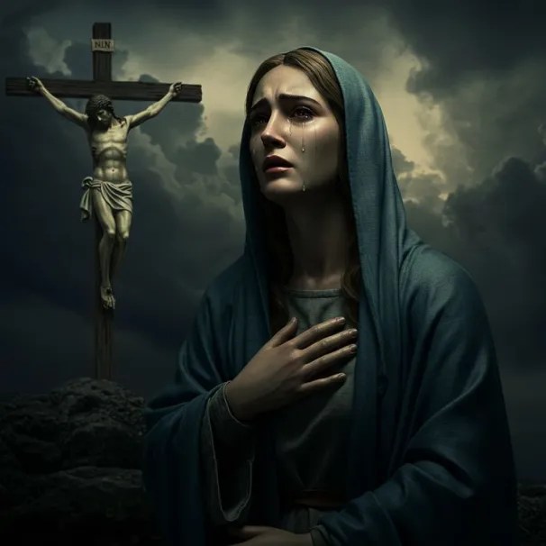 In the context of Jesus’ crucifixion, his address to his mother, Mary, is noteworthy. He referred to her as “Woman” rather than using the typical term “Imah” (Mother), which Jewish men in ancient Palestine would commonly use to honor their mothers under Mosaic law. This choice of words implies that Jesus viewed Mary not just as his biological mother but also as a spiritual figure. When he said to the Disciple, “Behold your mother,” he emphasized her role as a mother to all believers. This reference highlights Mary’s significance in a biblical sense; she is viewed as the Free Woman of Promise, prophesied in Genesis 3:15, who would ultimately triumph over evil through her faith and love, thereby contributing to the spiritual well-being of humanity. This interpretation is further supported by passages such as Luke 11:27-28, which highlight her blessed role in the narrative of salvation.