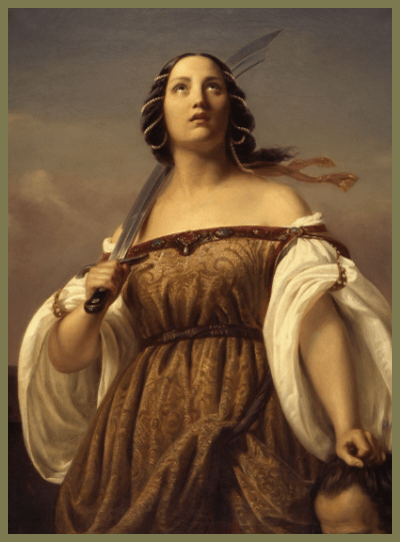 Three women in the Judaic tradition are highly praised. They are Esther, Jael, and Judith. These women and Sarah symbolize the Virgin Mary’s maternal role in the salvation story. Their courageous actions are fulfilled in Mary’s association with her divine Son in his redemptive work. Jael and Judith both strike heroic blows for Israel by cutting off the heads of their enemies’ chieftains, Sisera and Holofernes, under God’s guidance. These women are praised and considered blessed above all women because of their saving acts in union with God. All generations of Jews will follow suit and praise them (Jdgs 5:24-27; Jdt 13:18-20; 15:9-10).