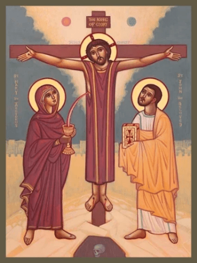 The phrase “Woman, behold your son – Behold your mother” is delivered with an authoritative tone, signifying a Divine decree. In this moment of suffering for humanity’s sins, Jesus addresses his mother, Mary, standing at the foot of the Cross, using the term “Woman.” This choice of words serves to redefine Mary’s role as a mother within the Divine plan of salvation. The Evangelist focuses less on Mary’s immediate circumstances and more on her significance as the woman prophesied by God to defeat evil through her faith and collaboration with Him. Following this, the narrative shifts to the Disciple, highlighting the implications of Jesus calling Mary “Woman” rather than “Mother” (Imah), and how this relates to the broader community of the faithful in the context of grace. This use of language is an example of constructive or synthetic parallelism, a literary device often analyzed in modern biblical exegesis.