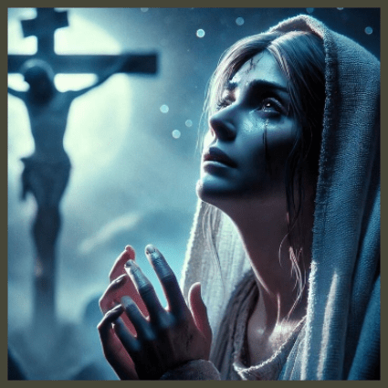 In the context of “Daughter Zion,” a term often used in biblical texts to personify Jerusalem or the people of Israel, these verses resonate with themes of revival and vindication. Daughter Zion experiences both the sorrow of exile and the joy of restoration, embodying the collective hopes and struggles of the Jewish people. The promise that “all your people will be righteous” suggests a transformative future where the community reflects God’s holiness and righteousness, fulfilling the divine intention for creation. Connecting this to Mary at the Cross, one can draw parallels between Daughter Zion’s suffering and Mary’s experience of grief as she witnesses Jesus’ crucifixion. Mary, often seen as a representation of Israel or Zion, embodies the deep sorrow of the Jewish people, particularly in the context of their longing for salvation and deliverance. Just as Daughter Zion endures suffering before experiencing restoration, Mary stands at the foot of the Cross, experiencing profound loss yet ultimately participating in the redemptive work of God through Christ.