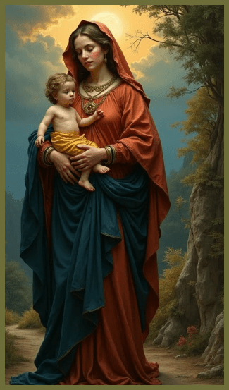 The Virgin Mary, as the mother of Jesus, is often seen as the ultimate fulfillment of the Daughter Zion archetype. Just as Daughter Zion represents the faithful waiting for the fulfillment of God’s promises, Mary embodies the actualization of that hope in her acceptance of God’s will and her role as the bearer of the Messiah. Mary’s humility, obedience, and righteousness make her a fitting representation of the qualities that the Lord fills in Zion.